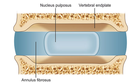 Section of the intervertebral disc showing the annulus and the nucleus pulposus